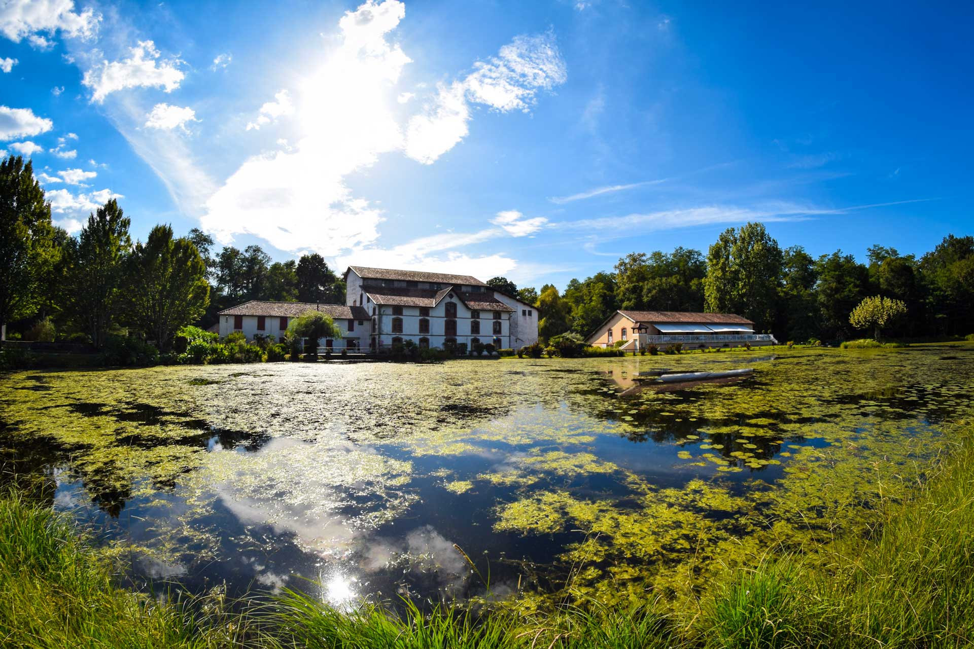 Traverser la passerelle et prendre la direction du moulin de Poustagnac. Ancien moulin à farine devenu minoterie, il abrite aujourd'hui un restaurant gastronomique.