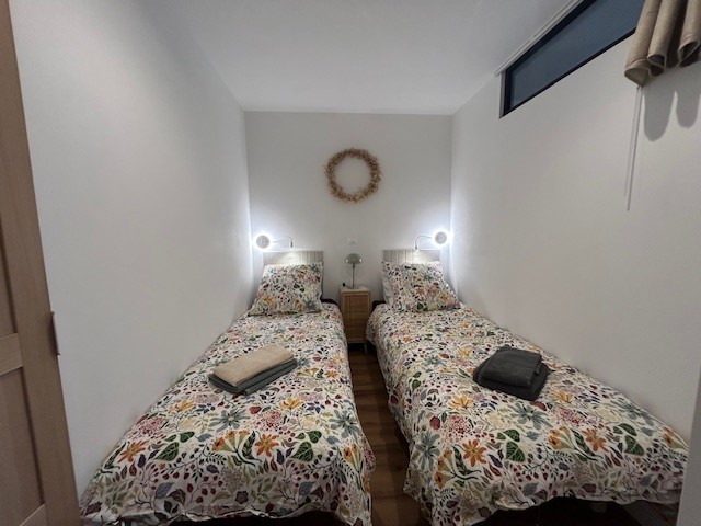 L’appartement, lumineux et climatisé, se compose d’une belle pièce de vie avec coin salon et coin repas, d'un espace nuit équipé de deux lits de 80cm pouvant être rapprochés pour former un lit de 160cm , d’une kitchenette entièrement équipée, ainsi que d’une salle de bains moderne avec douche à l'italienne et WC séparés.
